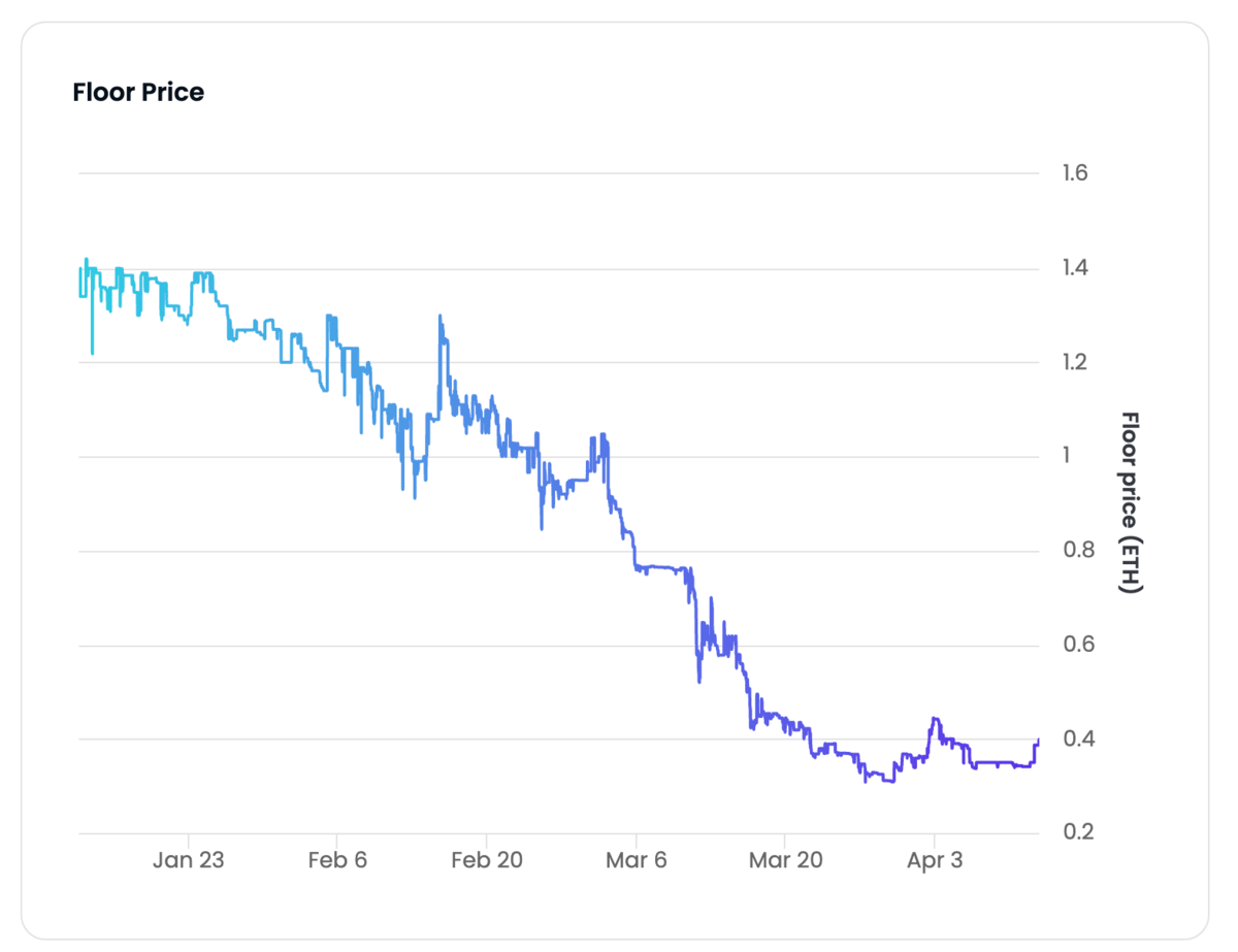 Moonbirds Oddities (like my one in the logo of this newsletter) can be burned for a Moonbirds Mythics at some point too. The floor of oddities has crashed from 1.4ETH to 0.4ETH over the last 90 days: