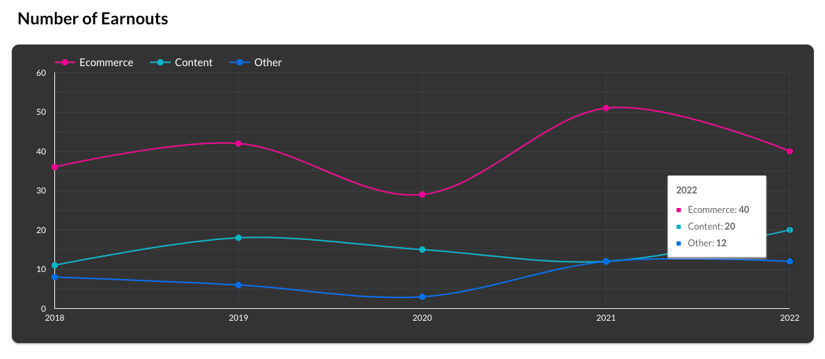 Content site business deals closed with 12 earnouts in 2021, which increased to 20 earnouts in 2022.